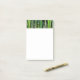 Notas pegajosas com um tema asiático. Uma fotografia de uma fileira de caules verdes e amarelados de bambu.