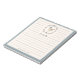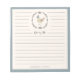 Faça sua lista de compras em estilo com este bloco de notas elegante que pode ser personalizado com seu nome e texto. Esta design apresenta uma ilustração feita em francês por uma mão pintada por Shelby Allison sobre um fundo de marfim com uma borda azul.