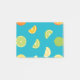Estas notas de pst apresentam limões, limões e laranjas em um fundo azul-lacrimejo.
