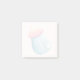 Notas pegajosas com uma imagem fofa de uma garrafa de bebê azul-claro com uma jante rosa.