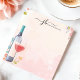 Bloco De Notas Garrafa de Vinho em Aquarela Floral Personalizada