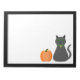 Este notável bloco apresenta uma imagem de arte digital de um gato cinza giro com orelhas pretas, nariz e boca e olhos verdes brilhantes. O gato está vestindo uma coleira verde com um charme brilhante de gema laranja em ouro. O gato está sentado ao lado de uma abóbora laranja.