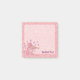 Um desenho de gato rosa tocando violino sobre notas de música, um fundo perfeito rosa. Texto personalizado.