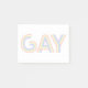 Este trabalho de arte apresenta a palavra Gay em uma fonte colorida do arco-íris.