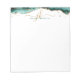 Notepad elegante personalizado de 5,5x6", com turquesa, geode e mármore acentuados com falso brilho dourado e monograma manuscrito de rico em ouro e nome em turquesa em papel branco. ALTERAÇÕES: O estilo, cor, tamanho e posicionamento da fonte de texto podem ser alterados em EDIT para uma aparência personalizada. ASSISTÊNCIA: para obter ajuda com a modificação ou personalização do design, alteração de cor, transferência do design para outro produto ou você gostaria de coordenar itens, entre em contato com o designer ANTES DE ENCOMENDAR através da guia MENSAGEM de bate-papo Zazzle ou envie um email para makeitaboutyoustore@gmail.com.