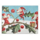 Funny vintage Christmas illustration of little white bearded gnomes dressed like Santa, painting holly berries in the snow. Published by L. Prang & Co.