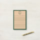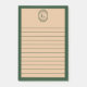Personalize this elegant sticky notepad in forest green and tan with your initial or the initial of the person you'd like to gift this to. The personalized sticky notepad features an art deco-inspired geometric monogram design and a lined paper in tan and dark green.