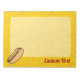 Ilustração de desenho animado de cachorro-quente sobre fundo sem costura de comida de lixo amarelo. Texto personalizado.