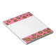 Este bloco de anotações é enfeitado com um padrão de animal brincalhão com uma impressão-leopardo rosa, que é exibida tanto no topo quanto na parte inferior do bloco.