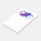 Símbolo infinito com uma bela pena pintada em cores roxas e azuis brilhantes sobre fundo branco.