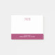 Notas personalizadas de posto em branco com detalhes de fúcsia. Seu nome, iniciais e informações de contato.