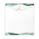 Bloco de notas personalizado, elegante, com iniciais ou monograma de escrita de caligrafia e nome em ouro e turquesa, com acentos de agata de turquesa e dourado falso. ALTERAÇÕES: O estilo, cor, tamanho e posicionamento da fonte de texto podem ser alterados clicando em EDIT para obter uma aparência personalizada. ASSISTÊNCIA: Para obter ajuda com a modificação ou personalização do design, alteração de cor, redimensionamento, transferência do design para outro produto ou, se você quiser coordenar itens, entre em contato com o designer ANTES DE PEDIR através da guia MENSAGEM de bate-papo Zazzle abaixo ou envie um email para makeitaboutyoustore@gmail.com.