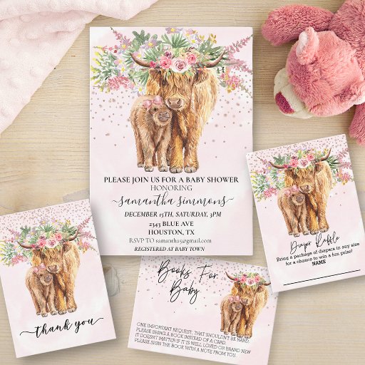 Pink Floral Highland Cow Baby Shower Criado por Color Flow Creations