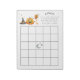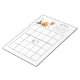 Um pequeno bloco de notas de jogo de chá de fraldas de abóbora de Halloween. Design moderno do Halloween para uma festa de dois! Este bloco de anotações bingo apresenta uma abóbora, um chapéu de bruxa, um balão, cornas doces, uma lua e estrelas. Este bloco de notas é excelente para festas de chá de meninas e garotos.
