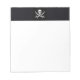 Bloco de notas branco de 5,5" x 6" com uma imagem de um Jolly Roger numa faixa preta na parte superior. Que partido de naufrágio excelente a favor! Veja toda a coleção do Bloco de Notas de Naufrágio nos TOUCHES ESPECIAIS| Seção Favoritos para festas.