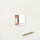 Notas pegajosas com um tema rústico. Uma jarra de leite branca e um casal de flores cor de laranja à volta da lata. Sentado num celeiro com feno. Painéis de madeira no fundo.