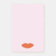 Um adesivo minimalista perfeito para designs de negócios de chic para maquiador, salão de beleza, pregador, belicista etc. Apresentando uma ilustração de lábios vermelho-esquisita num fundo estético pastel. Bloco de notas profissional para maquiagem masculina e feminina. Beleza, prego, esteticista makeuo, estético, fantoche de notas rosa de abstrato.