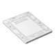 Bloco de notas personalizado com na moda e lápis/linha elegantes desenhados em um fundo branco e texto, "Da escrivaninha de... Seu nome." Entre em contato conosco para obter ajuda sobre a personalização ou produtos correspondentes.