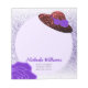 Bloco de notas de lavanda roxo com brilho vermelho. Chapéu vermelho cintilante com rosas roxas e brilho violeta lavanda nas costas. Personalize o texto com suas informações. Por favor, note que usamos fotos de faíscas, não de reluzentes! Sem brilho confuso ao toque!
