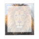 Bloco de notas de 5,5" x 6" com imagem de um leão africano e um espaço escrevendo branco e transparente. Veja toda a coleção de Notepad Safari nos TOUCHES ESPECIAIS | Seção Favoritos para festas.