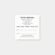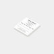 Estas anotações dizem "Seu Próximo Compromisso" no topo. Linhas de texto preto estão disponíveis para o nome da prática médica, endereço de rua e número de telefone. Há também linhas para a data e hora da nomeação. A parte inferior tem texto de exibição que você pode editar para mostrar uma mensagem personalizada. Todo o texto pode ser editado ou excluído. As notas são brancas.
