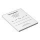 Este bloco de notas diz "Sua Próxima Consulta" no topo. Linhas de texto de exibição preto estão disponíveis para o nome do consultório odontológico, endereço, número de telefone e site. Há também linhas para a data e hora da consulta. A parte inferior tem texto de exibição que você pode editar para mostrar uma mensagem personalizada. Todo o texto pode ser editado ou excluído.