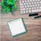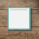 Este pequeno bloco de notas adesivo 3x3 quadrado pode ser personalizado com um nome ou mensagem. É para uma lista de lembretes, mas pode ser usada para quaisquer notas personalizadas. Tem um simples design com uma borda texturizada de turquesa.