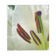 Fechar uma flor branca Lilium Oriental aberta mostrando a pistola, estigma, estilo e pólen de cor brilhante