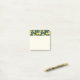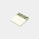 Notas pegajosas com um padrão fofinho que apresenta limões amarelos e fruta verde-limão com pedúnculos de folhas sobre um fundo verde escuro.