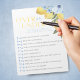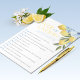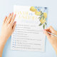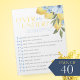 Notepad do Pacote de Jogo com Limão sobre ou Sob Chá. Inclui 40 lençóis rasgados facilmente. Peça aos seus convidados que adivinhem se as declarações acabaram, se estão abaixo ou se estão corretas circulando a resposta deles. Apresentando lindos limões amarelos de aquarela e flores florais azuis. Parte da nossa principal coleção de chás de panela. Veja outros jogos correspondentes no compro agora!