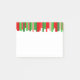 Este bloco de notas Poste tem um padrão de Natal de linhas em vermelho e verde em comprimentos variados.