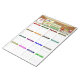 Este encantador bloco de notas para lista de compras de supermercado é o companheiro perfeito para suas compras semanais. Com sua adorável ilustração de desenho animado de uma cena de supermercado, apresentando uma mulher fazendo um pedido de carne no balcão enquanto seu bebê fofo senta-se num carrinho cheio de compras, ele adiciona um toque de alegria à sua experiência de compra. Organize suas necessidades de compras por categorias, como frutas e legumes, produtos agrícolas, carnes, laticínios, produtos domésticos, animais de estimação, itens pessoais e mais com este bloco de notas para lista de compras de supermercado.
