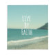 Ao vivo pela Bíblia Faith Verse merchandise Aqua Beach ocean background com um filtro retrô apresentando a escritura inspiracional de 2 Corinthians.