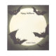 Uma lua de cheio brilha intensamente no céu noturno, cercada por morcegos voadores. A design apresenta um espaço aberto e vazio no meio, ideal para texto ou elementos adicionais, enquadrado pela atmosfera sombria, Halloween, da lua e dos morcegos.