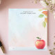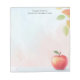 Este bloco de notas personalizado, maravilhosamente desenhado, apresenta uma maçã vermelha vibrante que repousa sobre um fundo pastel macio com folhas quentes de outono no canto. O design inspirado na aquarela lhe dá um eterno e um sentimento acolhedor, perfeito para professores, estudantes e qualquer um que ama artigos clássicos com um toque sazonal. Personalize o texto no topo para torná-lo um presente pensativo para educadores, escritores ou tomadores de nota diários.