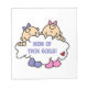 Nossa mãe de T-shirts Gêmeas, canecas, botões, ímanes, cartas, sacos de tote e outros itens da Mãe das Raparigas Gêmeas mostra dois bebês adoráveis em trenós cor-de-rosa e lavanda segurando uma nuvem que diz "Mãe das Raparigas Gêmeas!".