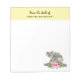 Um bloco de notas com um adorável design de aquarela. Mãe e bebê do urso Koala. O bebê está andando nas costas da mamãe. Em pé em um galho de árvore. Um buquê de flores de hibisco debaixo deles. Fundo amarelo de banana.