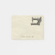 Máquina de costura personalizada com letra aberta usando os modelos do produto. Definido na textura do papel de pergaminho do estilo de vindima bege cretado.