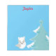 Um lindo bloco de notas utilizando um fundo azul, personalize o seu nome no topo, com uma letra vermelha cursiva, e uma árvore de Natal azul no canto inferior direito. Há também uma raposa branca. Personalize o seu hoje! Design Prettygrafik (https://www.etsy.com/shop/Prettygrafikdesign)