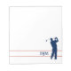 Este especial bloco de notas de golfe apresenta um marinho de golfe azul de silhueta em troca de cheio. Na parte inferior, o terceiro é o seu monograma em azul correspondente, emoldurado por linhas vermelhas finas. O texto e a imagem são colocados sobre um fundo branco.