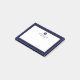 Um bloco de notas profissional moderno, com um design minimalista em marinho azul e branco. Nome e título personalizados, função ou texto personalizado apresentado em um plano de fundo branco simples, enquadrado por uma borda bege. Personalize usando os campos fornecidos ou use o botão 'mensagem' para entrar em contato com o designer para obter ajuda.