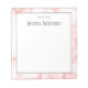 O bloco de anotações tem uma elegante borda de mármore rosa-falsa. Na parte superior da área branca do escrevendo, há texto de cinza que pode ser editado ou excluído para criar uma mensagem personalizada. (Mostrado: DA MESA DE Jessica Anderson).