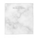 O Bloco de notas profissional apresenta o nome personalizado e o texto no estilo de fonte de serif clássico da cinza no fundo de mármore branco.