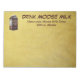 Uma caixa de leite de uma fazenda leiteira mundial famosa e inteiramente mítica de Matanuska Moose milk no Alaska; não muito longe de Anchorage. O slogan "Beba leite de alce" também é exibido. A imagem do logótipo apresenta uma ordenha manual leiteira Matilda, a primeira alça leiteira de fazenda. Você pode escolher uma cor de fundo. Acreditem ou não que há fábricas de alce; um pequeno número na Rússia e um na Suecia. O leite de alce é cultivado comercialmente na Rússia. Um vitelo de alce de nascer fazenda é retirado da mãe nas 2 a 3 horas seguintes ao nascimento e é criado por pessoas. É primeiro alimentado a garrafa com um substituto do leite, e depois alimentado a partir de um balde. Os animais imprimem e tornam-se ligados aos seres humanos. O leite é rico em gordura-butírica (10%) e sólidos (21,5%), segundo dados coletados sobre a alce russa; a pesquisa sobre o leite-alce americano está em estado menos avançado do que na Rússia, mas parece indicar que a alça americana tem até concentrações mais alto de sólidos no leite. Diz-se que o leite de alce é um pouco salgado e amargo, com uma sugestão de agulhas de pinho ou de pinto. O leite de alce é cultivado comercialmente na Rússia. Um vitelo de alce de nascer fazenda é retirado da mãe nas 2 a 3 horas seguintes ao nascimento e é criado por pessoas. É primeiro alimentado a garrafa com um substituto do leite, e depois alimentado a partir de um balde. Os animais imprimem e tornam-se ligados aos seres humanos. Tal como acontece com os bovinos leiteiros, os vitelos são retirados das suas mães após um curto período de tempo. Os russos dizem que as alças reconhecem rapidamente as leiteiras como substitutas como seus vitelos substitutos. Nesse ponto são liberados para a floresta, mas visitam a fazenda todos os dias para serem ordenhados durante o período de lactação (normalmente até setembro ou outubro). Durante o inverno, os animais vagueiam por toda a floresta circundante. Mas geralmente não se afastam muito, mas passam muito tempo em matas próximas, onde as árvores são cortadas, alimentando-se de subprodutos de operações madeireiras. E eles conhecem a fazenda como o lugar para rações diárias de aveia, e como um lugar seguro para dar à luz a sua juventude. Um sanatório russo serve leite alado aos residentes, acreditando que ajuda a se recuperar da doença ou a administrar doenças crônicas de forma mais eficaz. Alguns investigadores russos recomendaram que o leite de alce pudesse ser utilizado para a prevenção de doenças gastroenterológicas em crianças. A fazenda Elk (Moose são chamados Elk in Europe) House (Älgens Hus), em Bjurholm, considera-se que a Suecia é o único produtor mundial de queijo alce. O queijo vende cerca de 500 dólares por libra. O restaurante de Algens Hus oferece pratos de queijo alce. Queijo comum com pão ou biscoitos, ou melhor ainda, musse de alce congelado. Melhor servido com framboesas.