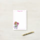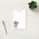 Arte miniatura fofa de uma menina caprichosa com cabelos amarelos longos e fluídos e usando um vestido verde e meias listradas. Ela está segurando um lindo buquê de rosas vermelhas em suas mãos estendidas. Originalmente feita como arte digital, Uma maneira adorável de manter o controle das suas coisas a fazer.