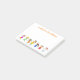 Um bilhete da professora notas adesivas personalizadas. Decorado com uma ilustração colorida e fofa de crianças felizes pulando de alegria. É personalizado com a linha heather contendo o nome da professora e uma breve introdução à nota. Personalize com seu próprio nome e texto. Essas notas adesivas ajudarão você a se comunicar com seus alunos e dar a eles e a seus pais feedback e incentivo de forma positiva e alegre.