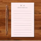 Notas cor-de-rosa emborrachadas que podem ser personalizadas com a inclusão de duas das suas iniciais do monograma e do seu nome. As notas são alinhadas e podem ser usadas como uma lista de tarefas. A design é minimalista, elegante e simples.