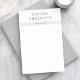 Notas adesivas brancas e poeirentas, brancas e poeirentas, com seu nome em uma fonte sans serif moderna, com texto personalizado por baixo de uma banda verde-poeirenta leve.