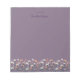 Bloco de anotações chic moderno com borda de ilustração floral de flor silvestre com texto personalizável e nome na sombra de mauve roxa mudo.