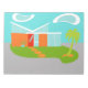 Este Meio século moderno Cartoon House Notepad vai querer que você coloque o tapete WELCOME e se faça em casa! A design de arte minimalista da década de 1960 apresenta uma elegante pedra laranja e uma casa de vidro aqua numa relva luxuosa, verde, em forma de bumerangue. O gramado forma um oásis no meio de suas cinzas, arredores de concreto. Uma palmeira verde está balançando na brisa. Quatro, pedras laranja pisadas levam o caminho para a porta traseira, vermelha, frontal com três vidraças retangulares de vidro. À esquerda da porta, uma floreira de turquesa segura uma planta verde tropical. A casa tem um telhado branco inclinado em V que aponta em direção a duas nuvens brancas em forma de rim. O céu é uma forma serena de aqua. Ninguém vai querer jogar pedras desta design de casa de vidro moderna! Comprar este produto da era espacial e seja o gato mais legal do seu quarteirão!